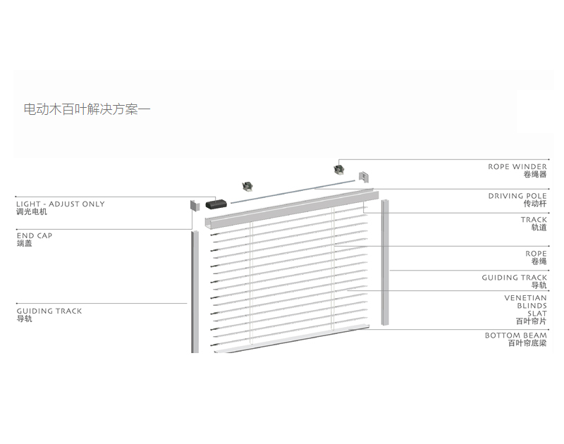 MotorizedWoodenVenetianBlinds电动木百叶室内电动木百叶帘被广泛应用于办公楼,酒店,书房,会议室隔断,浴室或盥洗室隔断等场所。室内木百